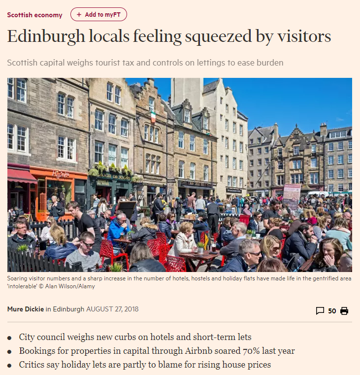 These are all very real, but I want to focus for now on the impact of large-scale tourism (and this includes one-off, large events, more prolonged festivals such as the Edinburgh fringe, or permanent tourism destinations) on local authorities, and its parallel that can also be applied to economic growth through retail or other destination-led expansion of local economies.